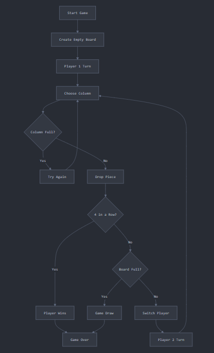 Connect 4 algorithm design is about creating the game logic - the rules, win detection, and player management that make the game work. This means: